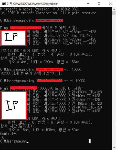> ping [IP or Domain] [옵션]