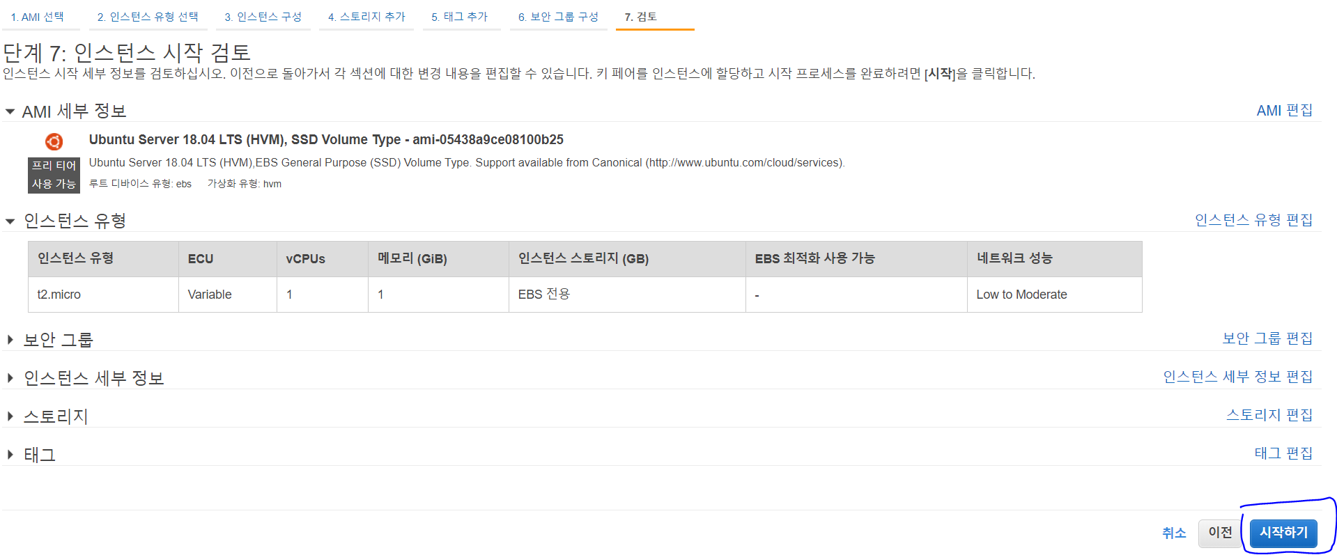 6. 시작하기를 누른다.