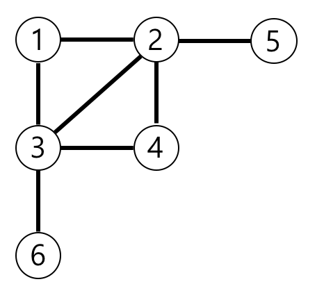 예제의 그래프를 표현하면 아래 그림과 같고, 1번 노드에서 가장 멀리 떨어진 노드는 4,5,6번 노드입니다.